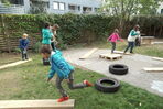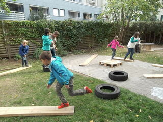 Im August bin ich mit dem Projekt „Kinder in Bewegung“ gestartet. Hier lerne ich als Leiterin, wie sich Bewegung positiv auf alle Entwicklungsbereiche auswirkt; insbesondere auch auf das Lernen und das Wohlbefinden des Kindes. Zudem erhalte ich vielfältige Inputs für Angebote, Material und Gestaltungsmöglichkeiten von Bewegungssettings. Während des aktuellen Schuljahres werde ich verschiedene, möglichst langfristige Bewegungsangebote im Hort einführen. Für die Herbstferien habe ich Material gesammelt, um im Garten eine Bewegungsbaustelle einzurichten. Durch die Bewegungsbaustelle wird der eigene Körper bewegt, die Raumorientierung angeregt, das Einschätzen von Kraft, Tempo und Schwerkraft wird gefördert, der Gleichgewichtssinn wird auch angeregt.