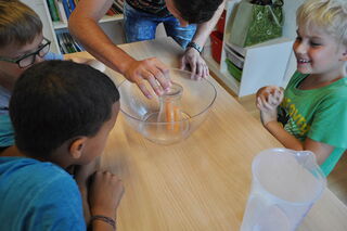 Als Abschluss der Lagerwoche waren die Eltern eingeladen und konnten an verschiedenen Stationen zusammen mit ihren Kindern experimentieren.